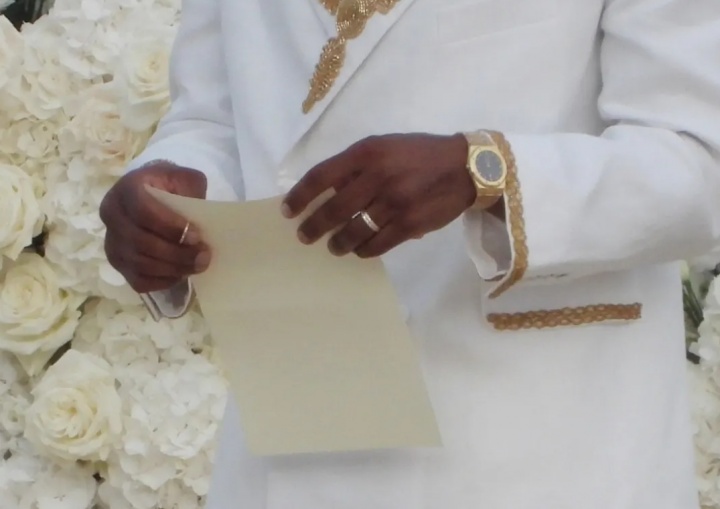 现场画面中,威少感动落泪,妻子妮娜身穿一袭精美白色长裙,指间闪耀钻戒光芒。