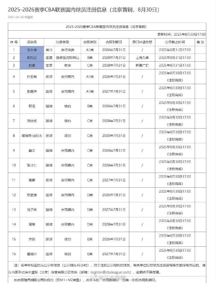 @三土带刺 在其微博中表示:“北京首钢2025-26赛季的本土阵容中,曾凡博预计将于31日完成预注册。